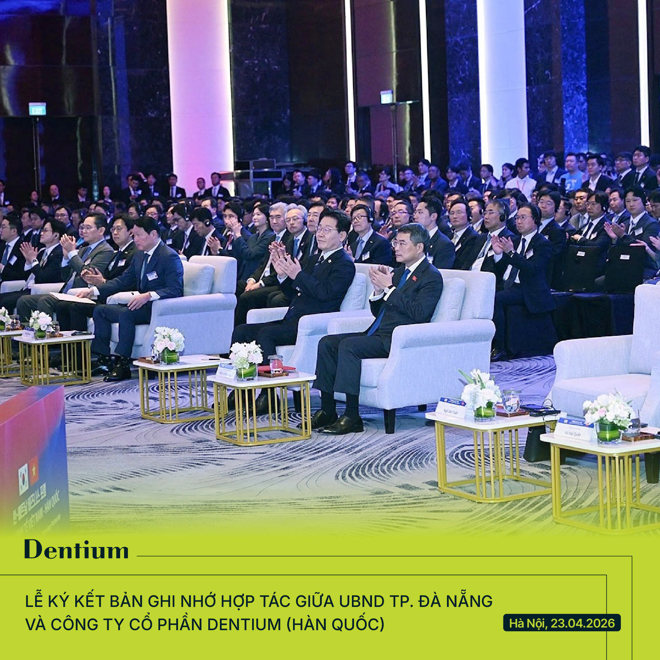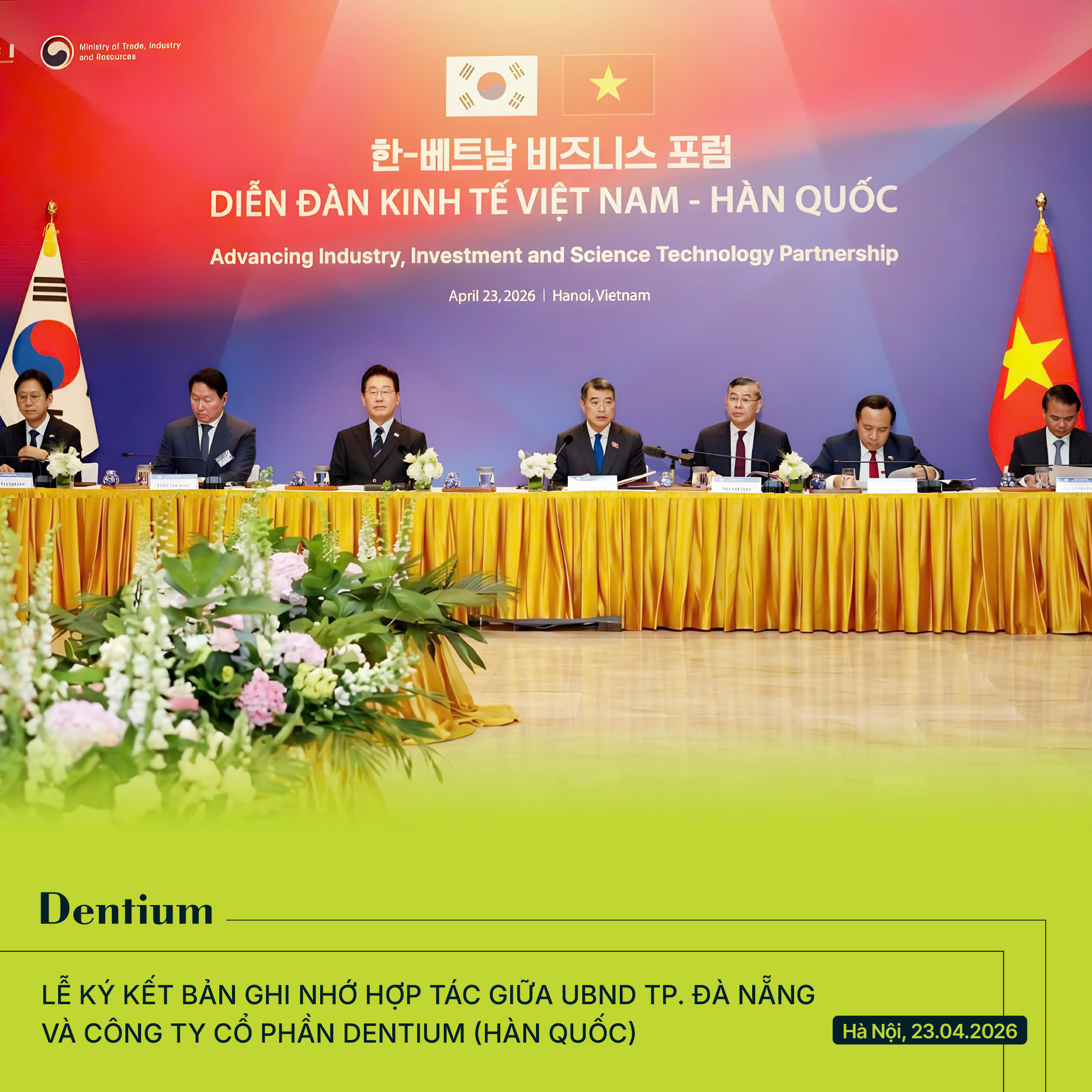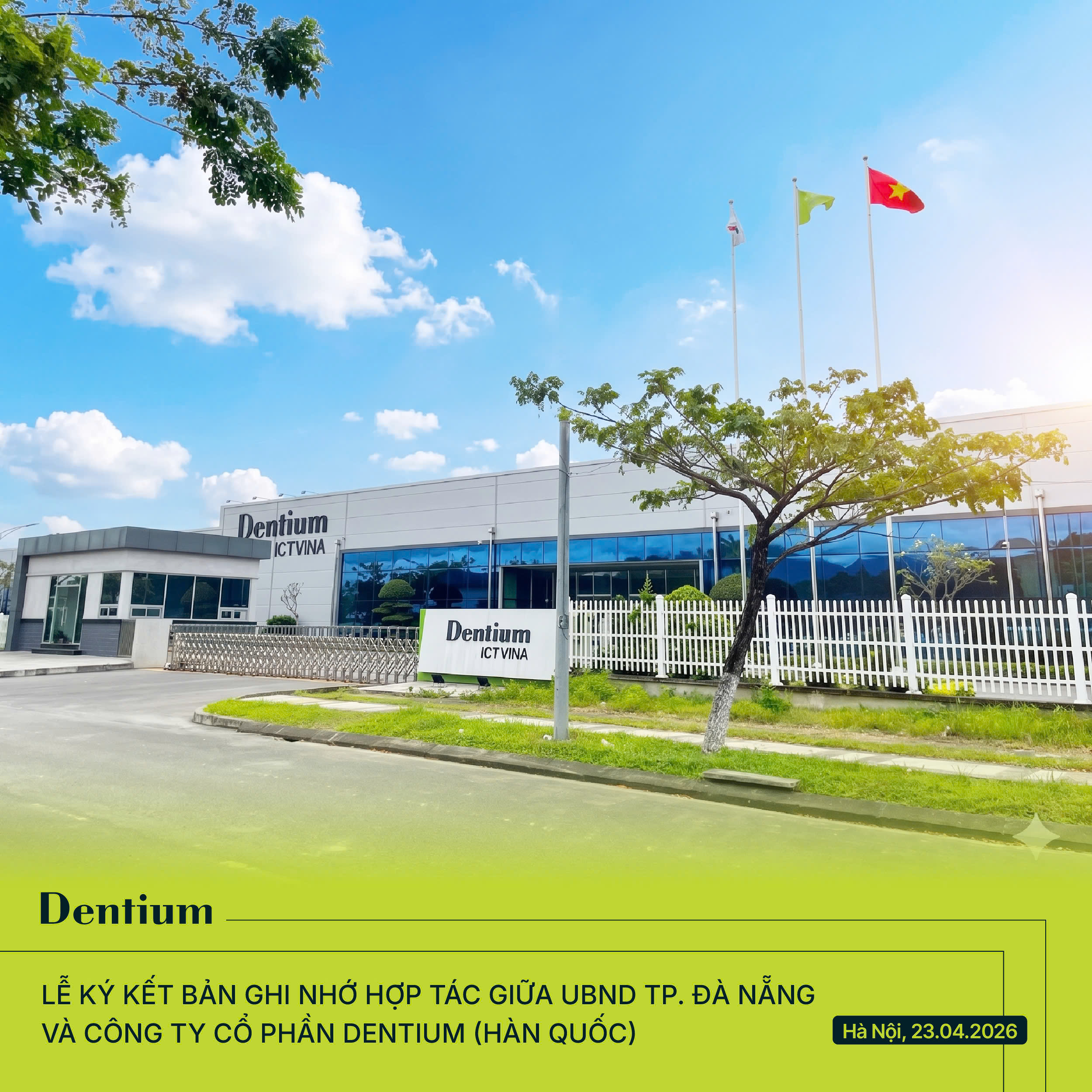 Ngày 23/04/2026, trong khuôn khổ Diễn đàn Kinh tế Việt Nam - Hàn Quốc cấp Nhà nước, Dentium đã chính thức ký kết Bản ghi nhớ hợp tác (MOU) với UBND TP. Đà Nẵng, khẳng định vai trò tiên phong của doanh nghiệp Hàn Quốc trong thúc đẩy đầu tư công nghệ cao tại Việt Nam.
